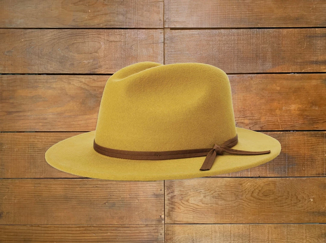 The Brixton Coleman Fedora is a medium flat-brim felt fedora with a quilted grosgrain band.