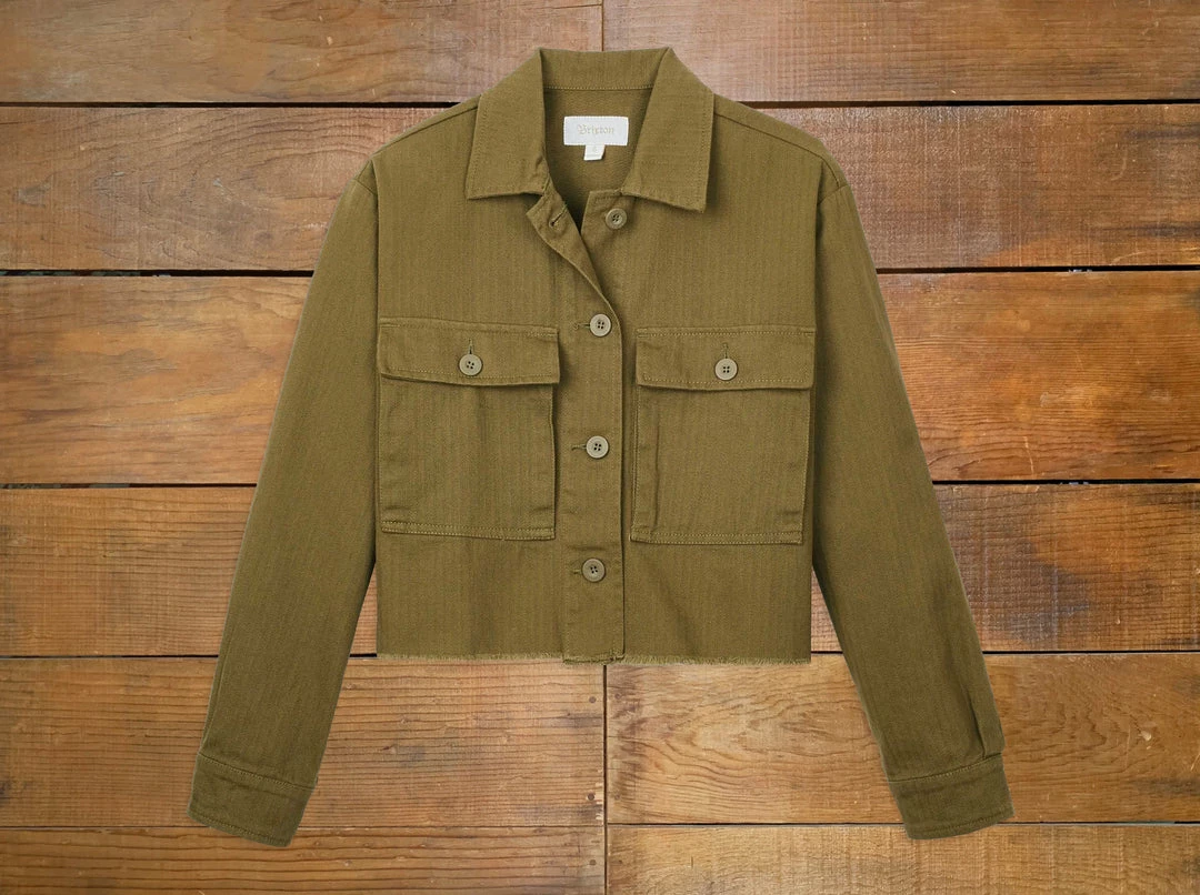 A military-inspired cropped overshirt made in 8.5-oz 100% cotton herringbone twill.