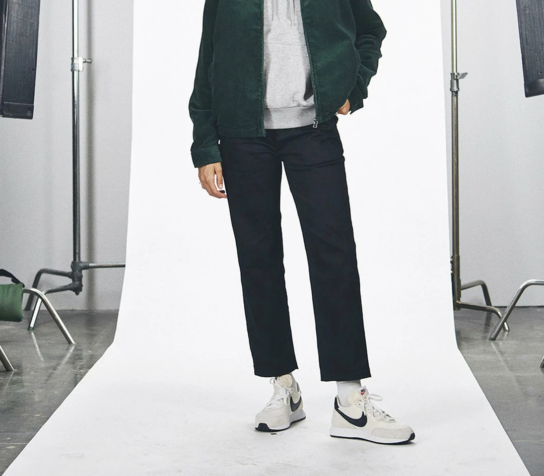 A high-rise, straight-leg chino work pant made in 9-oz. cotton/polyester twill with 1% stretch.