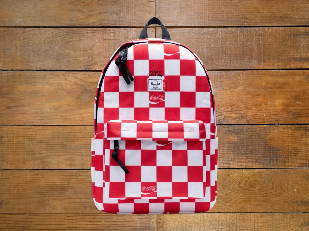 Featuring a 1980s-inspired checkerboard print, the Coca-Cola® Classic X-Large is made for long summer days at the beach. Created from recycled PET fabric, the backpack is made with a lightly insulated liner and water bottle pockets.