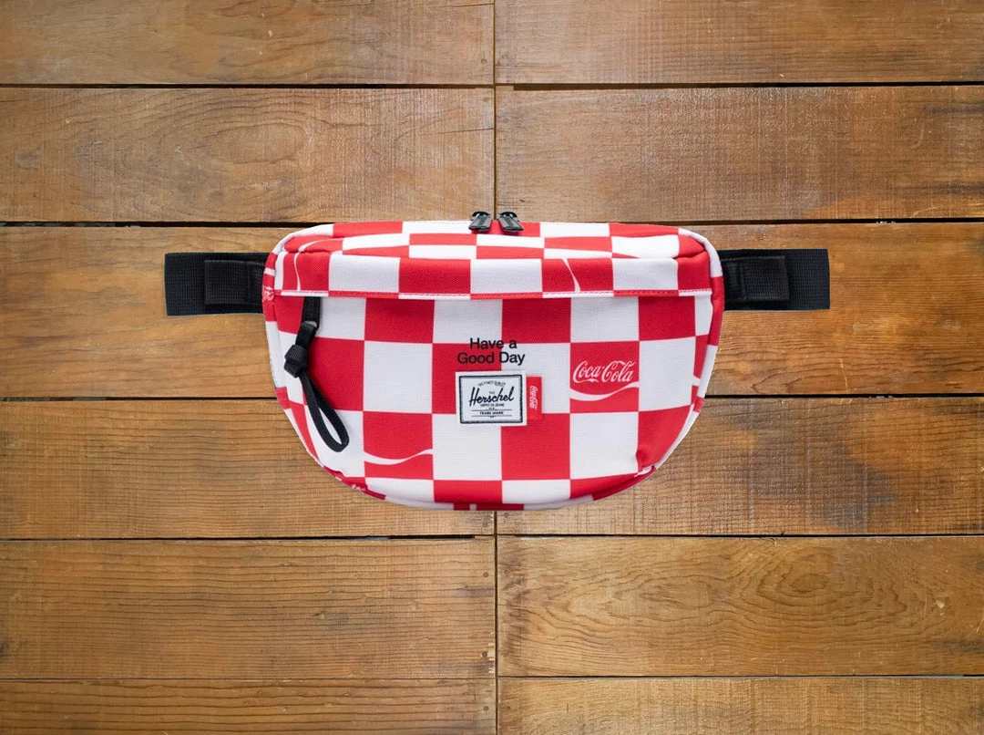 Created from recycled PET fabric, the Coca-Cola® Nineteen hip pack is made for summer fun and beach clean ups. The hip pack features a 1980s-inspired checkerboard print and a lightly insulated liner.