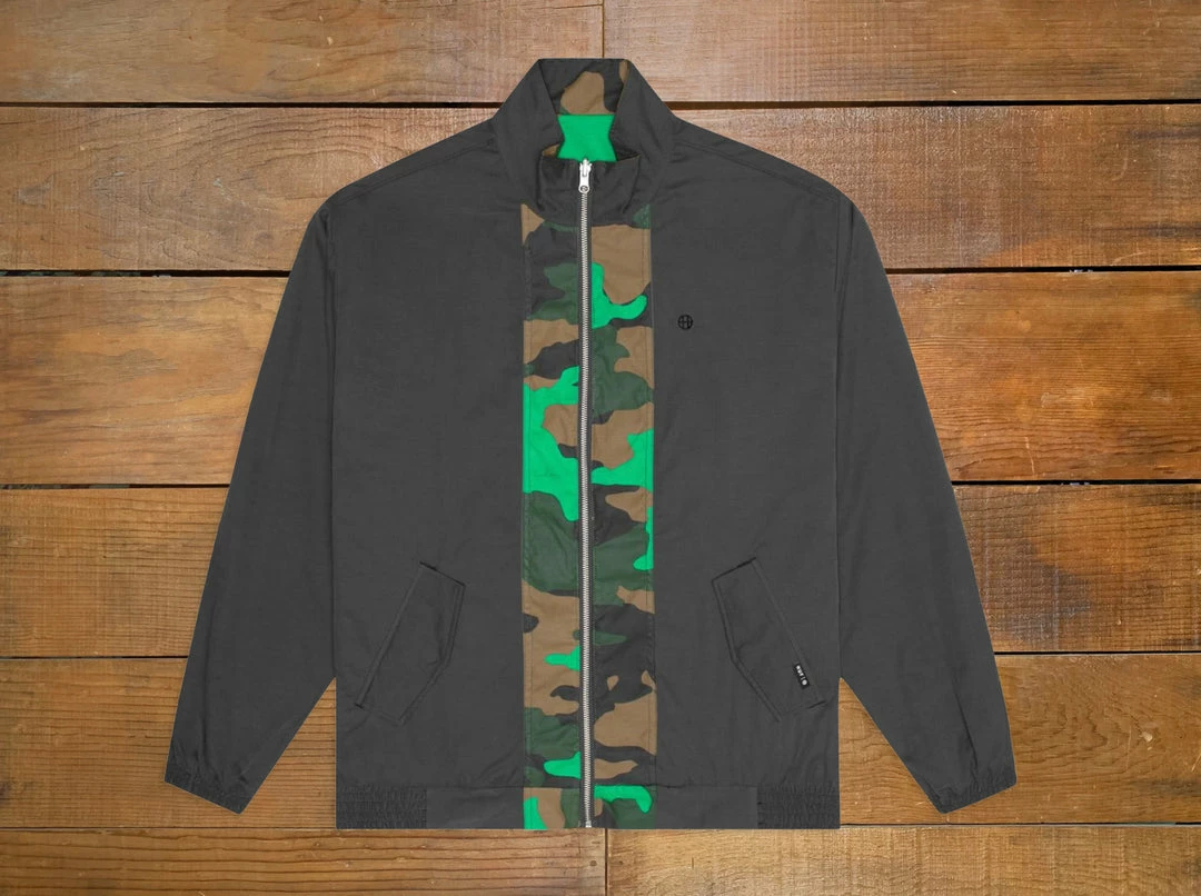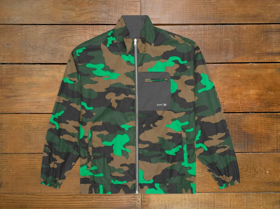 - Reverse: contrast camouflage print panels at center & covered welt hand-pockets