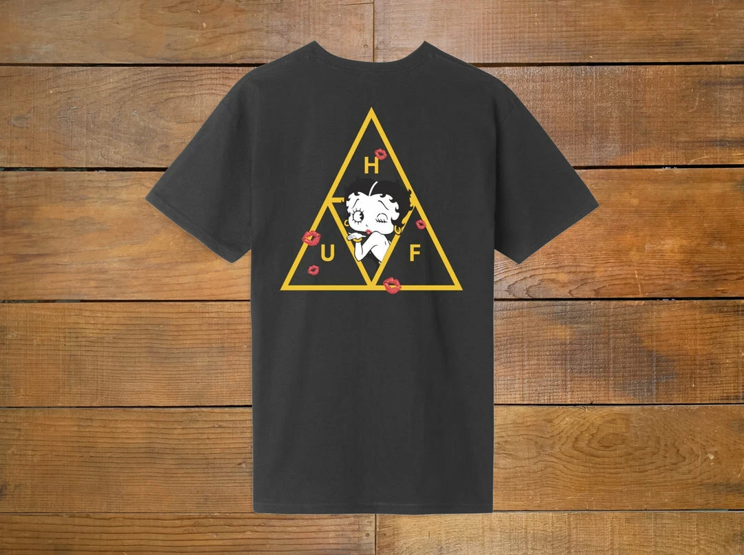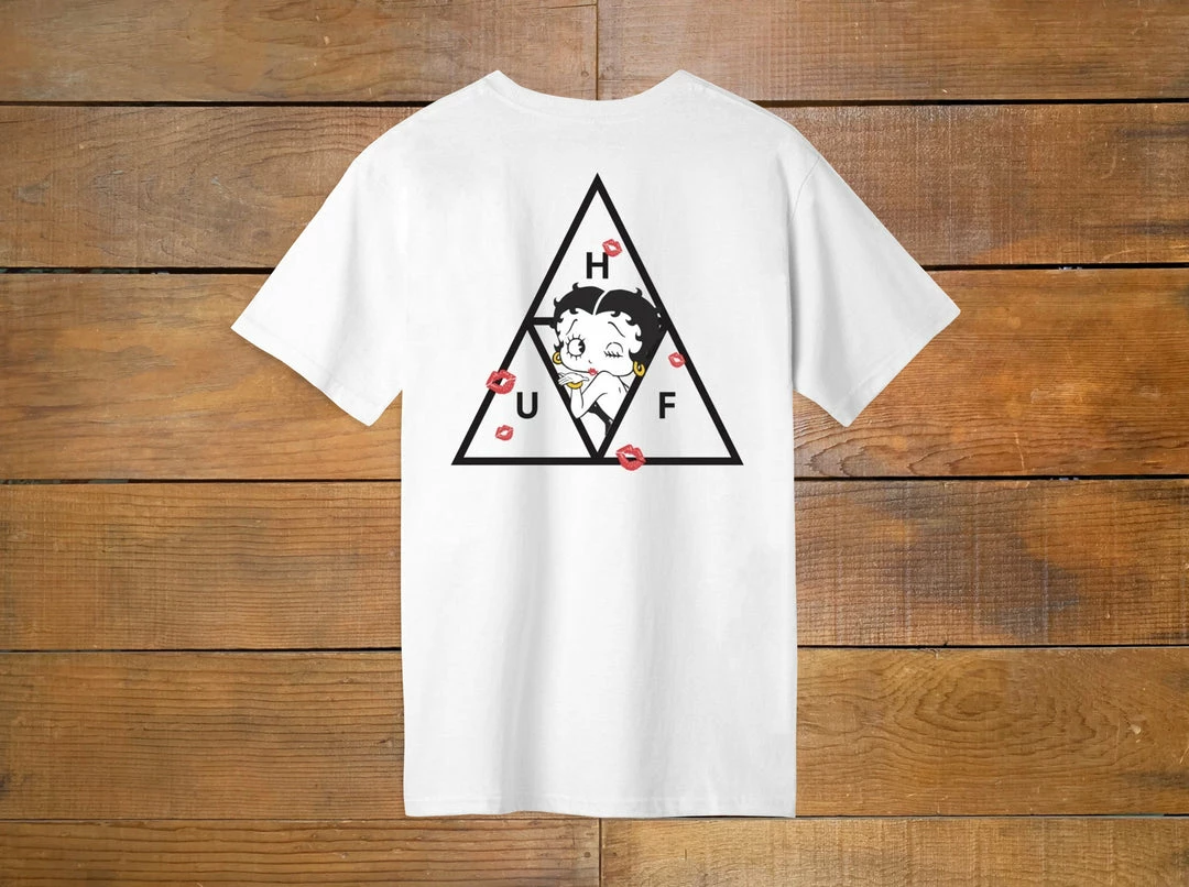 The Betty TT Short Sleeve Tee features a collaborative HUF Triple Triangle fill at left chest and back celebrating Betty Boop as one of the world’s first and most famous sex symbols to grace the animated screen.