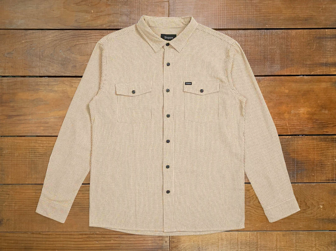 The Brixton Olson L/S Woven is a long-sleeve workshirt made in 7-oz. 100% cotton twill fabric with a heavy enzyme wash.