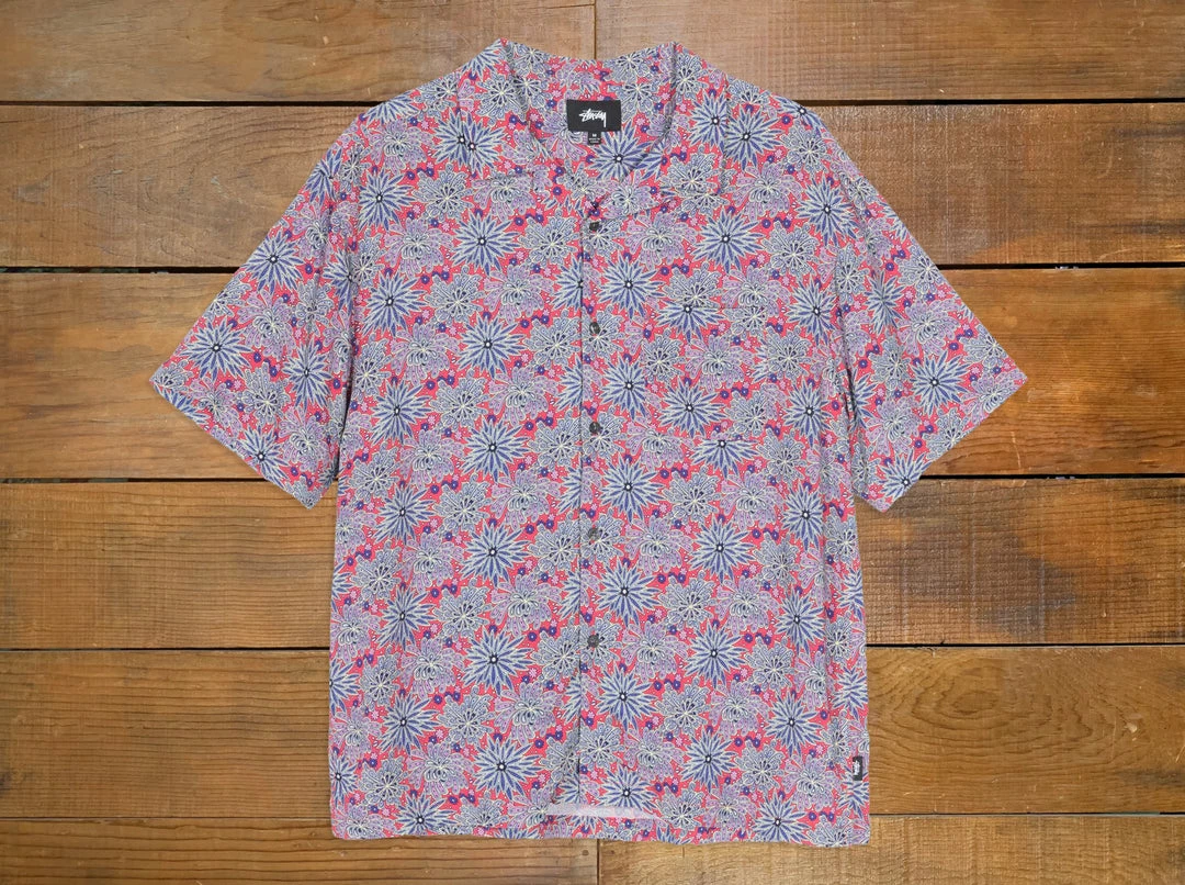 Boxy fit buttoned down short sleeve collared shirt with all over floral print. Left chest pocket with signature woven flag label.