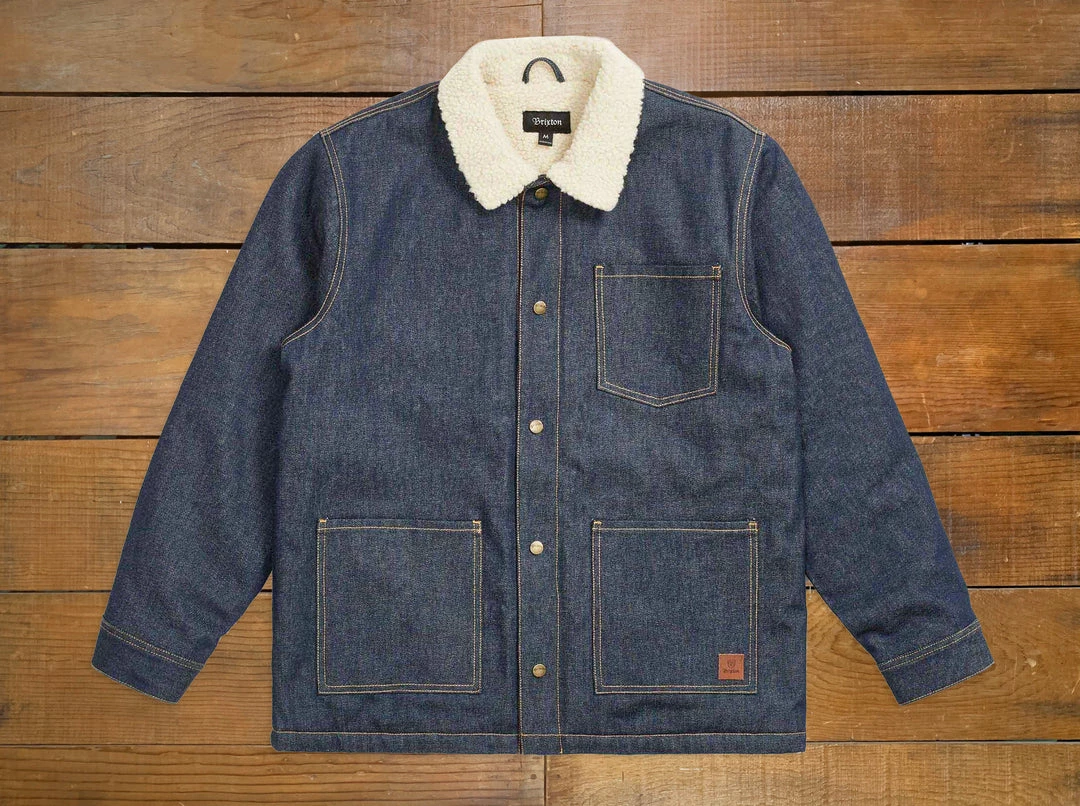 The Brixton Yard Sherpa Denim Jacket is a workwear-inspired chorecoat properly crafted in 14-oz. 100% cotton denim woven by Cone Denim and Sherpa lining. It features custom metal snaps, chainstitched seams, and a Brixton leather patch.