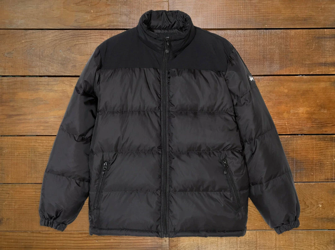 - Down filled puffer jacket with logo zip pulls and Stussy rubber patch on left sleeve.